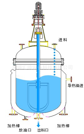 攪拌罐蓋上部配置有傳動(dòng)裝置(電機(jī)或減速器),由傳動(dòng)軸驅(qū)動(dòng)攪拌罐內(nèi)的攪拌器。